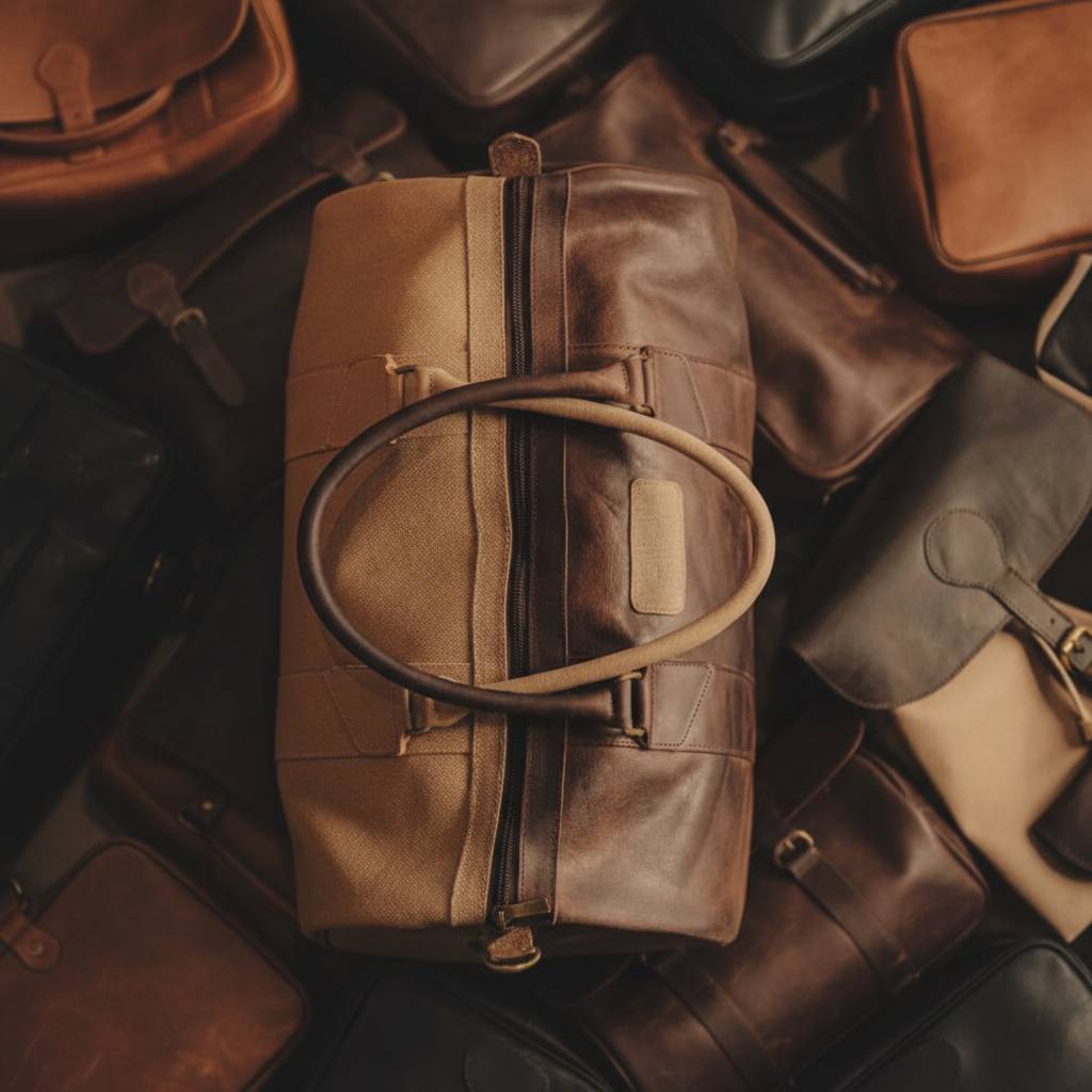 Handcrafted travel bag made from premium full-grain leather.