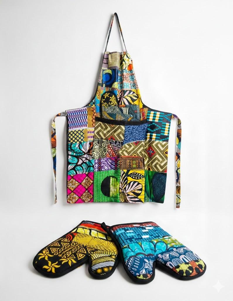 Shop: IMIZI CraftsAfrican Print Apron Set | Ankara Patchwork Oven Mitt | Colorful Kitchen Linens | Handmade Cooking Apron | Boho Kitchen Accessories | Wax Print Chef Apron | Ethical Housewarming Gift | Quilted Oven Glove | Multicolor African Textiles | Unique Culinary Gift