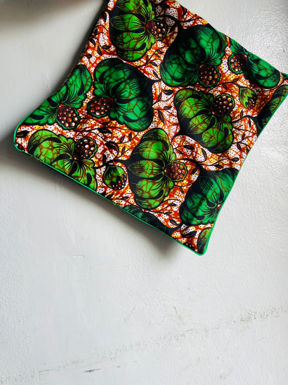 Shop: IMIZI CraftsTropical Leaf Pillow Cover | African Print Palm Cushion | Orange Green Throw Pillow | Botanical Home Decor | Jungle Print Pillowcase | 18x18 Tropical Cushion | Summer Home Accent | Cotton Sofa Pillow | Exotic Leaf Decor | Vibrant African Pillow