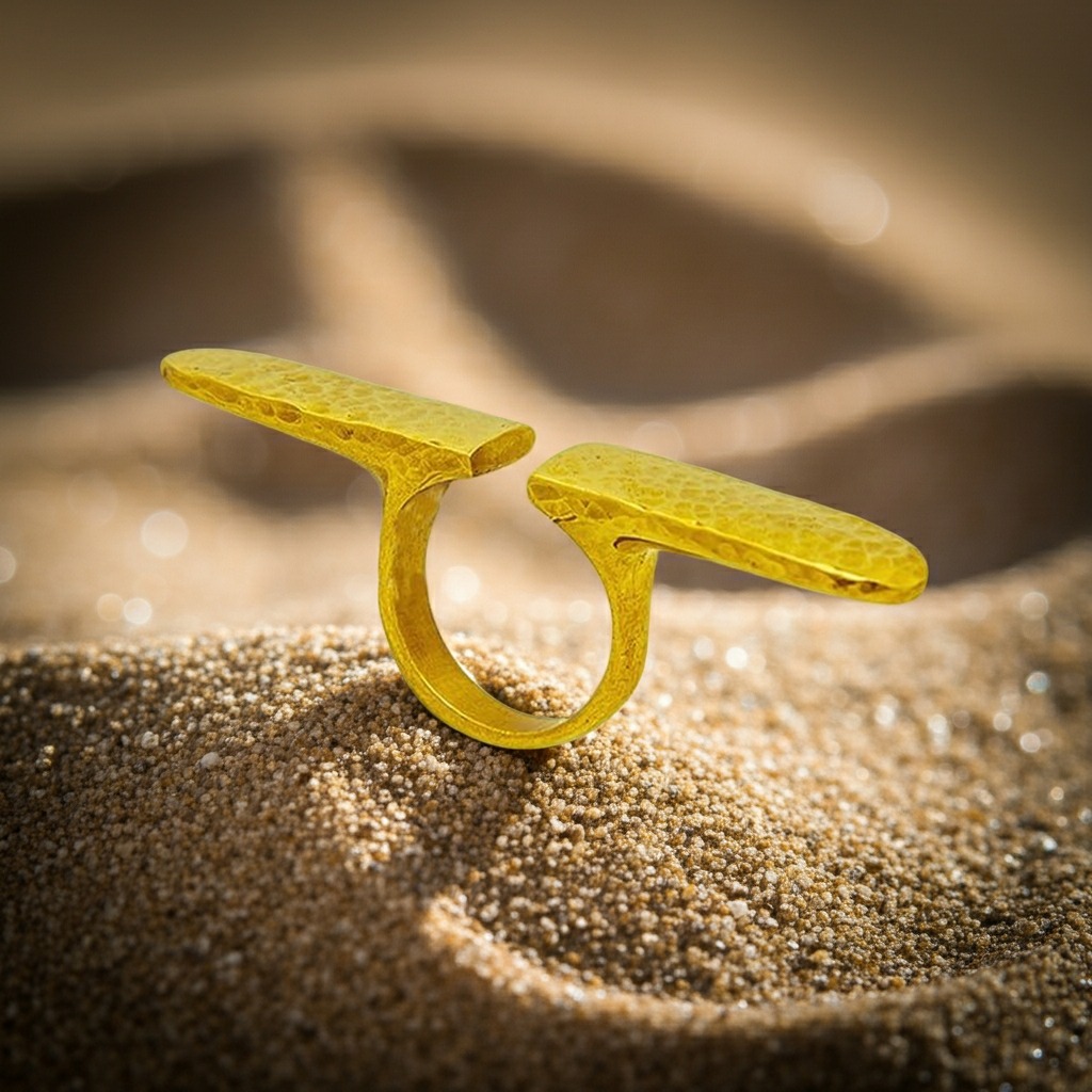 Minimalist Power: Wear solo on the middle finger and let the elongated golden line speak for itself.