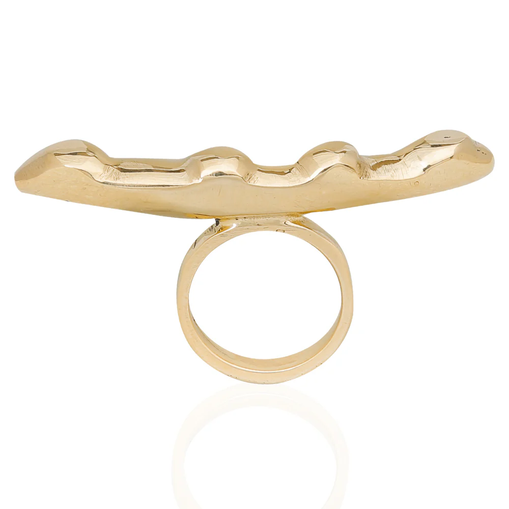 Shop: Adele DejakAnnmarie Ring – Handcrafted Sculptural Jewelry | Adele Dejak Jewelry | Architectural Brass Ring | Elongated Ring| Chic jewelry | Bold Gold Ring | For Women | Kenyan Luxury Jewelry | Studded Brass Ring | by Adele Dejak | Nairobi, Kenya
