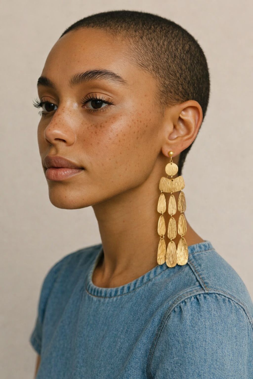 Cultural Celebration: Style with vibrant prints or headwraps; the bold brass form harmonizes perfectly with rich textures and colors.