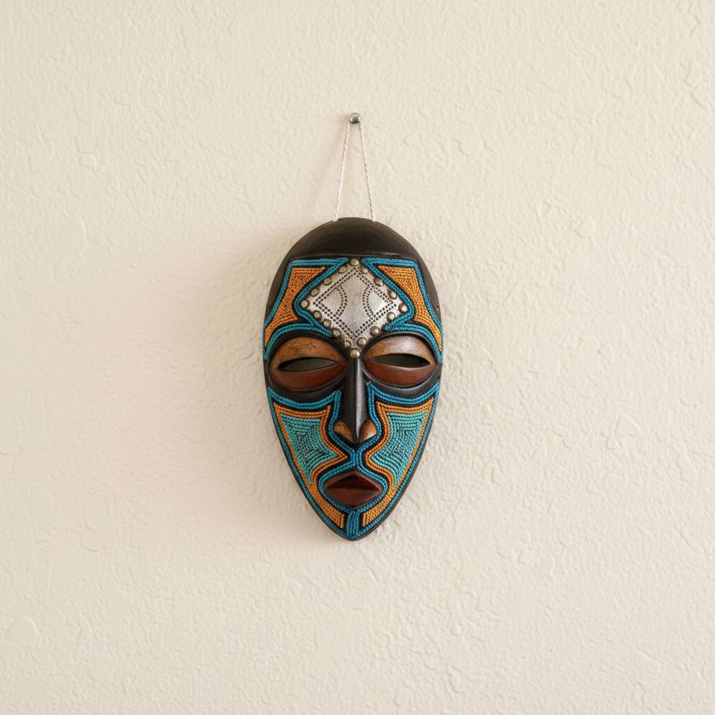 Shop: IMIZI CraftsImizi Beaded Tribal Mask | Hand Carved Wood Art | African Wall Decor | Collector's Edition | Turquoise Orange Beads | Artisan Home Accents | Ethnic Gallery Piece