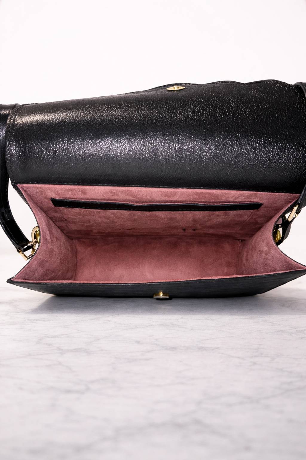 Maintenance: Wipe clean with a soft, slightly damp cloth. Condition the black leather every 6 months with a premium natural leather balm to keep the hide supple. Polish the gold hardware gently with a dry microfiber cloth to maintain its shine. Store stuffed with paper in a dust bag to maintain its structured silhouette when not in use.