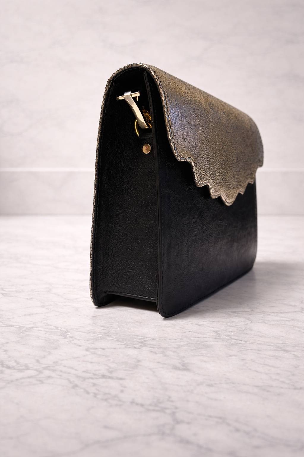Shop: Achmaria SnACHMARIA Sn Belle Fleur Bag | Handmade Black & Gold Leather Handbag | Artisan Statement Purse | Leather Handbag | Black and Gold Bag |Artisan Handbag | Statement Purse