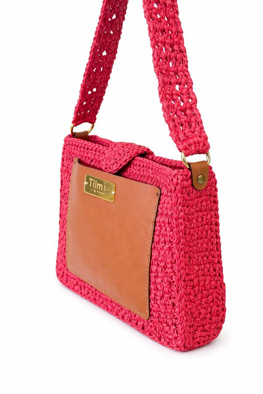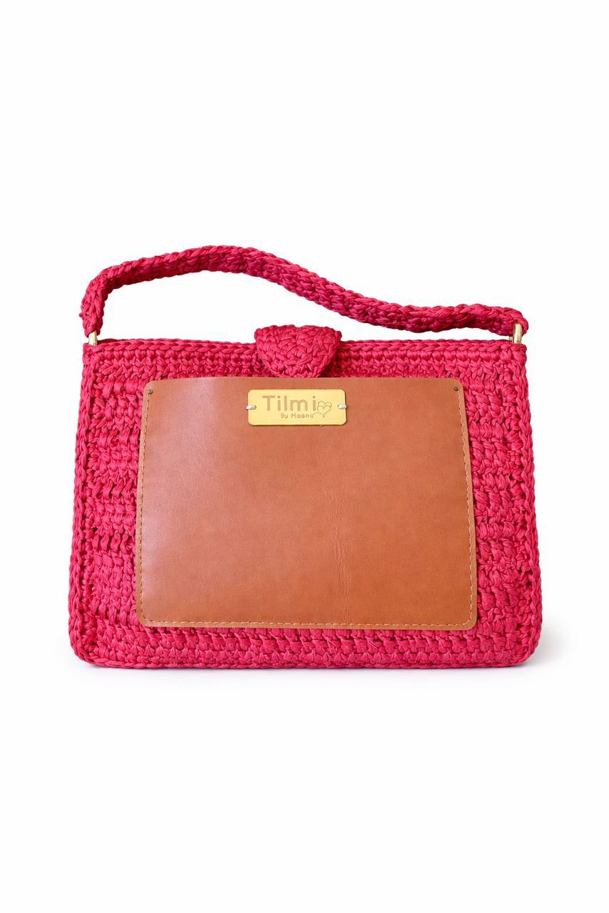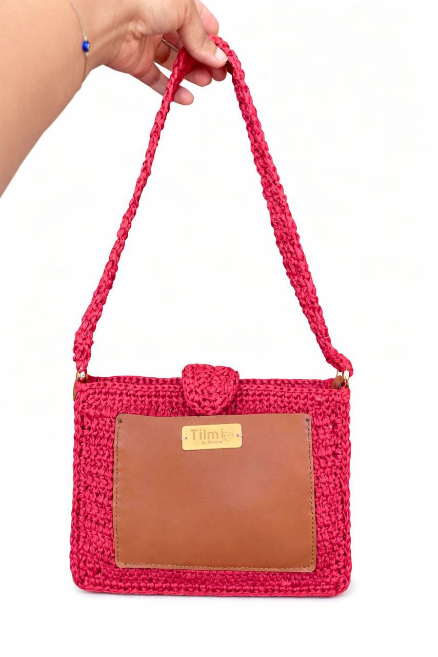 Shop: Tilmi by MoanaHandmade Raffia Shoulder Bag | Vibrant Bordeaux Red | Genuine Cowhide Leather Pocket | Lightweight Artisan Design | Secure Magnetic Clasp | Chic Everyday Fashion | Braided Woven Strap | Spacious Daily Capacity