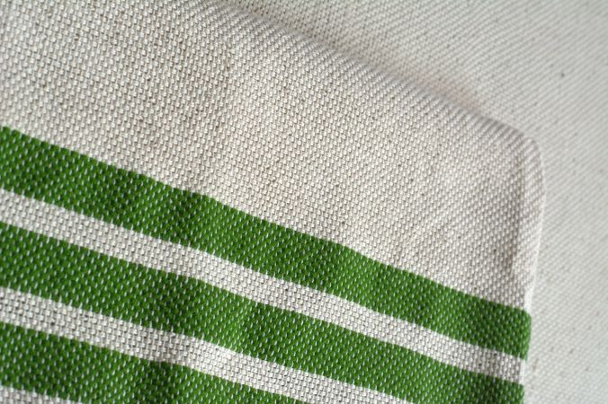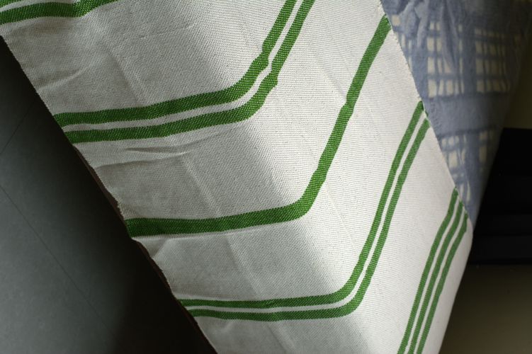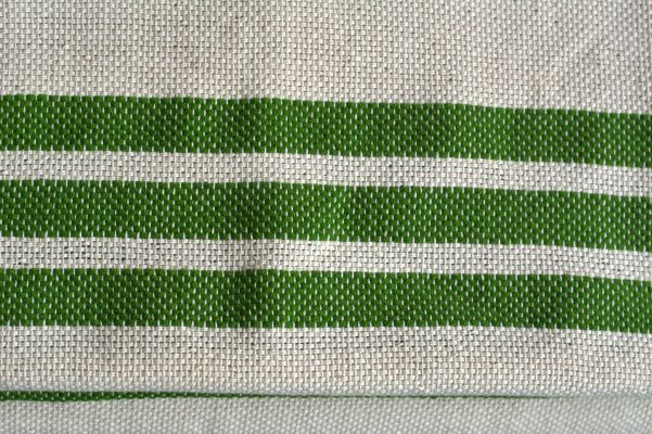 Balanced Stripe Design: Defined by its repeated horizontal banding of green stripes set within a soft ivory ground.