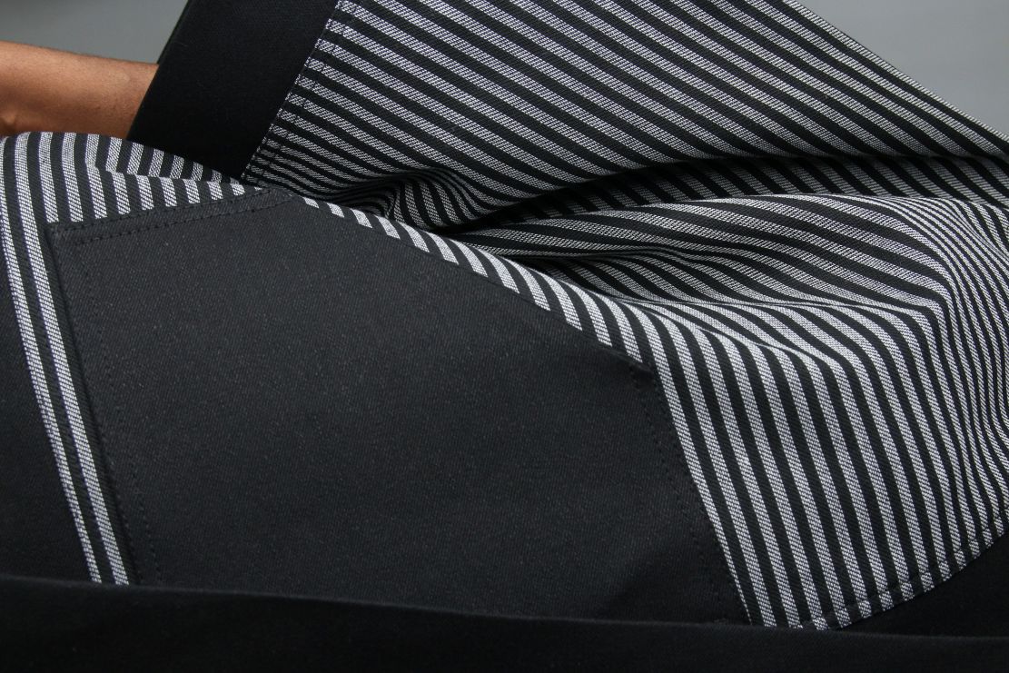 Unique Artistry: Features unique, non-repeat stripe patterns on premium denim, ensuring no two garments are ever alike.