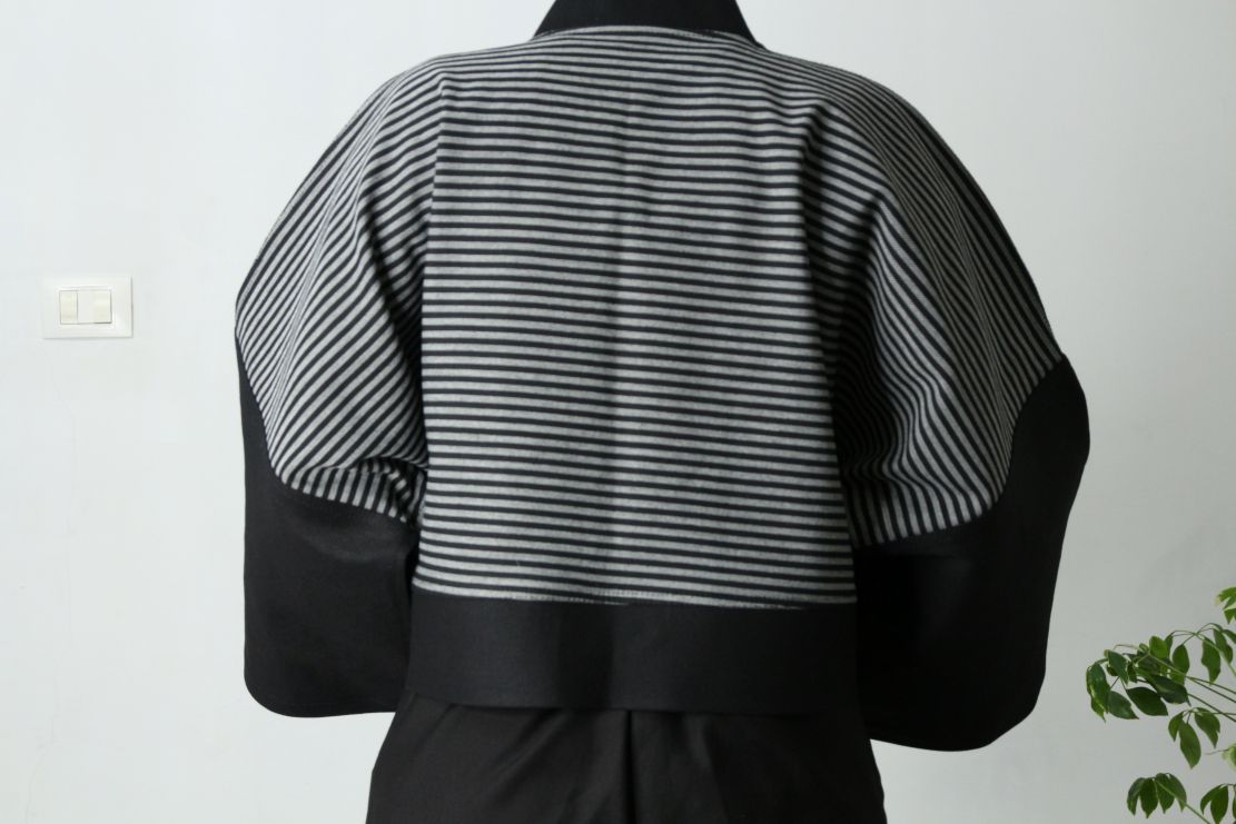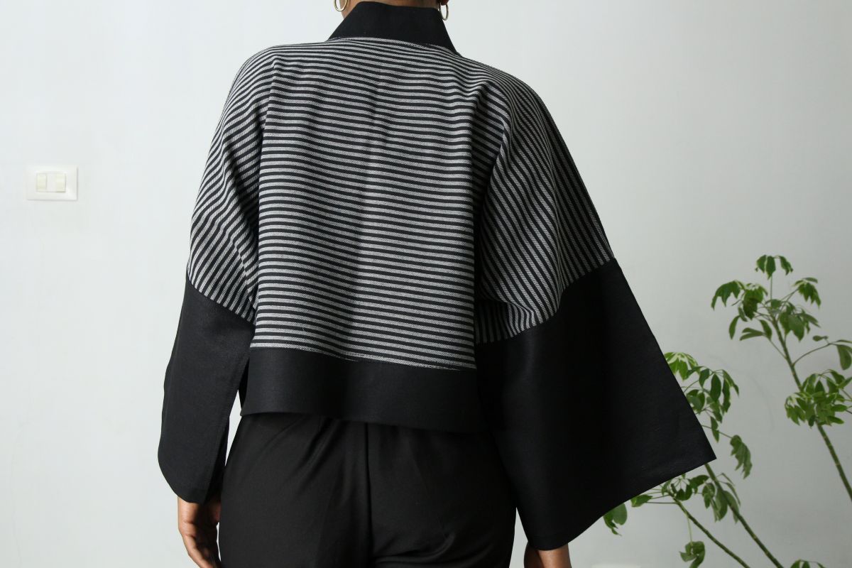 Denim Strata Short Kimono Coat - Textured Stripe Structured Denim Layer