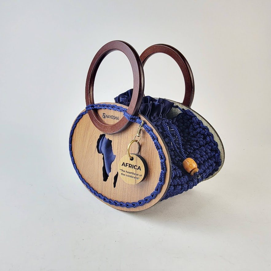 Shop: Nayesha DesignsEdudzi Medium Crochet Handbag | Shapeful Artisan Statement Bag | Round Wood Accent & Detachable Strap | Ghanaian Designer Bags | Solo Creation | By Nayesha Designs