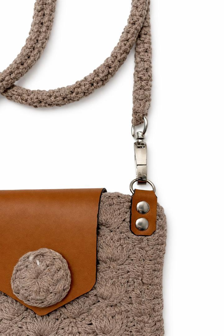 Texture/Finish: Rich crochet pattern with a smooth leather flap