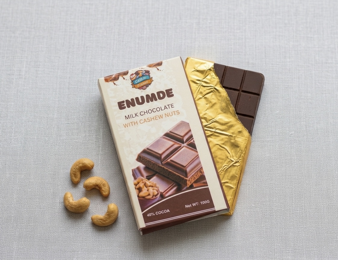 Enumde Milk Chocolate with Cashew blends smooth milk chocolate with crunchy cashew nuts to create a rich and satisfying chocolate experience.