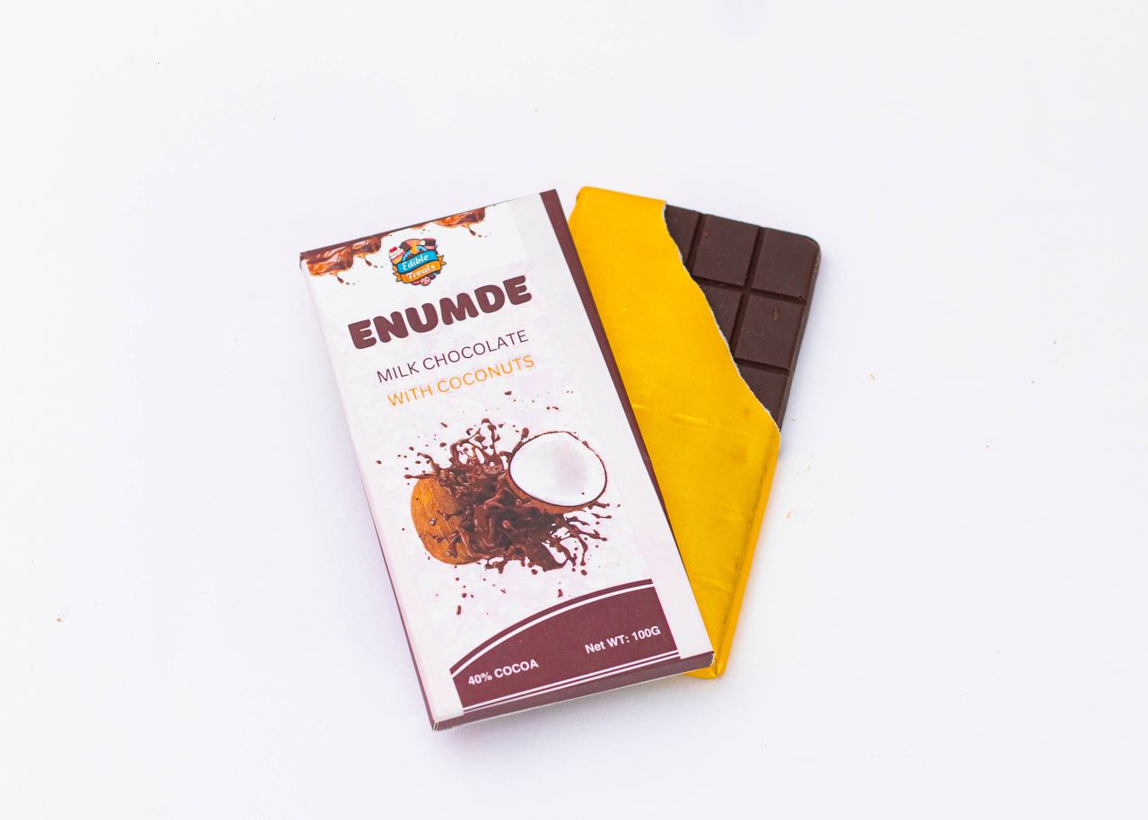 Enumde Coconut Milk Chocolate | Tropical Flavor | Smooth Melt | Authentic Ghana Cocoa | Sweet Snack | Chocolate Lovers | Dessicated Coconut | 100g