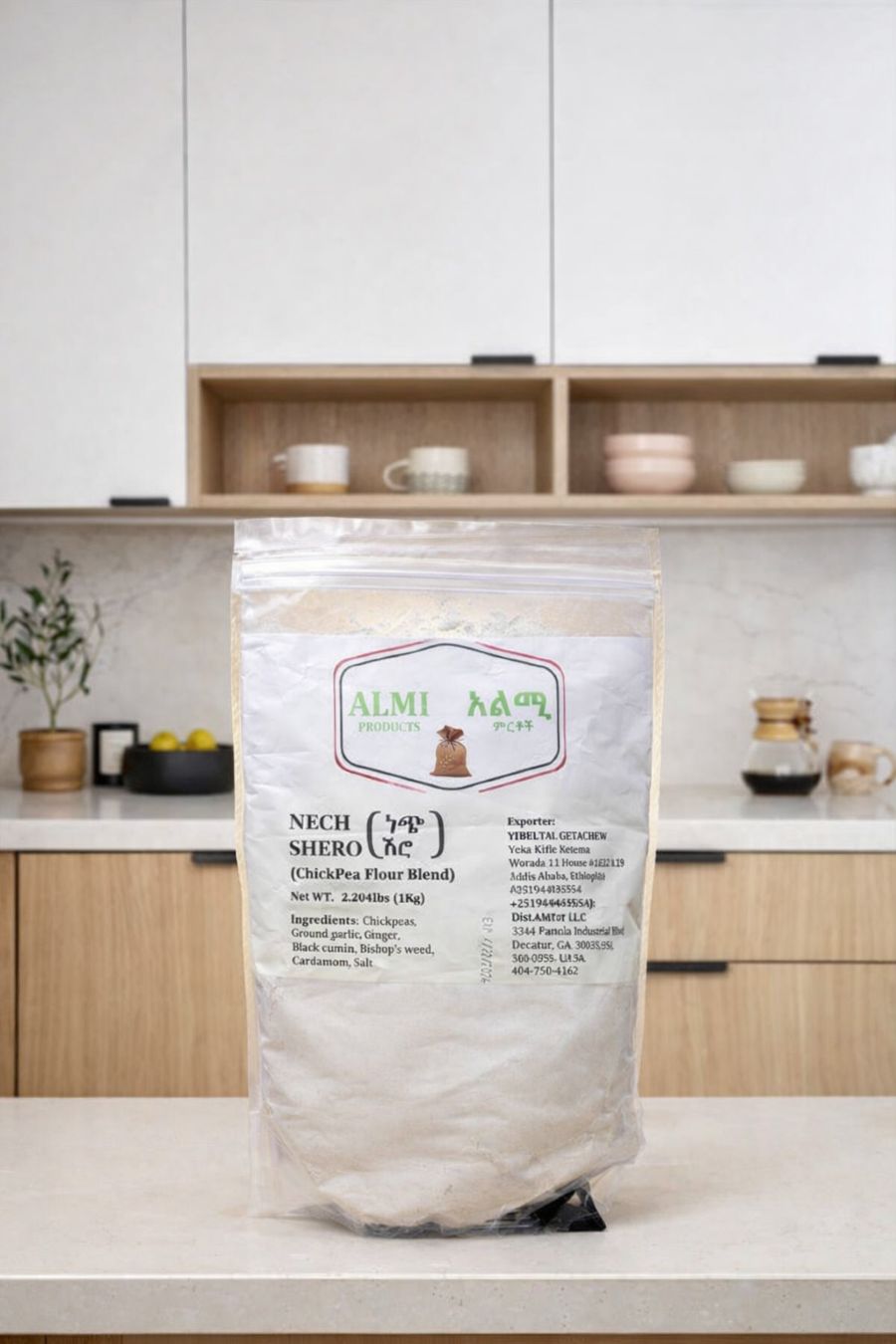 The Ethiopian White Chickpea Mix by Almi Products (traditionally known as Nech Shero) represents the lighter, more delicate side of Ethiopia’s beloved shiro tradition. Sourced from premium white chickpeas, this blend is meticulously ground and infused with gentle, aromatic spices to create a soft and creamy texture. Unlike its spicier counterparts, this mix is celebrated for its smooth consistency and balanced taste, making it a favorite for children and those seeking a comforting, mild meal.