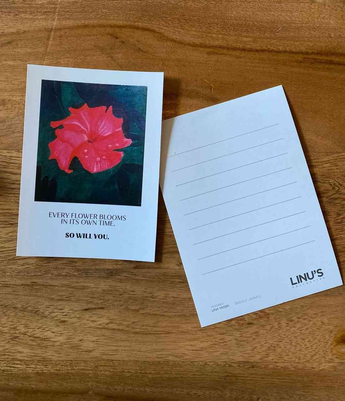 Shop: LINU'S COLLECTIVEEvery Flower Blooms Postcard | Inspirational Quote Greeting Card | Motivational Floral Typography Art Print | Modern Minimalist Wall Decor | Positive Affirmation Message Souvenir Gift for Home | Office & Journaling