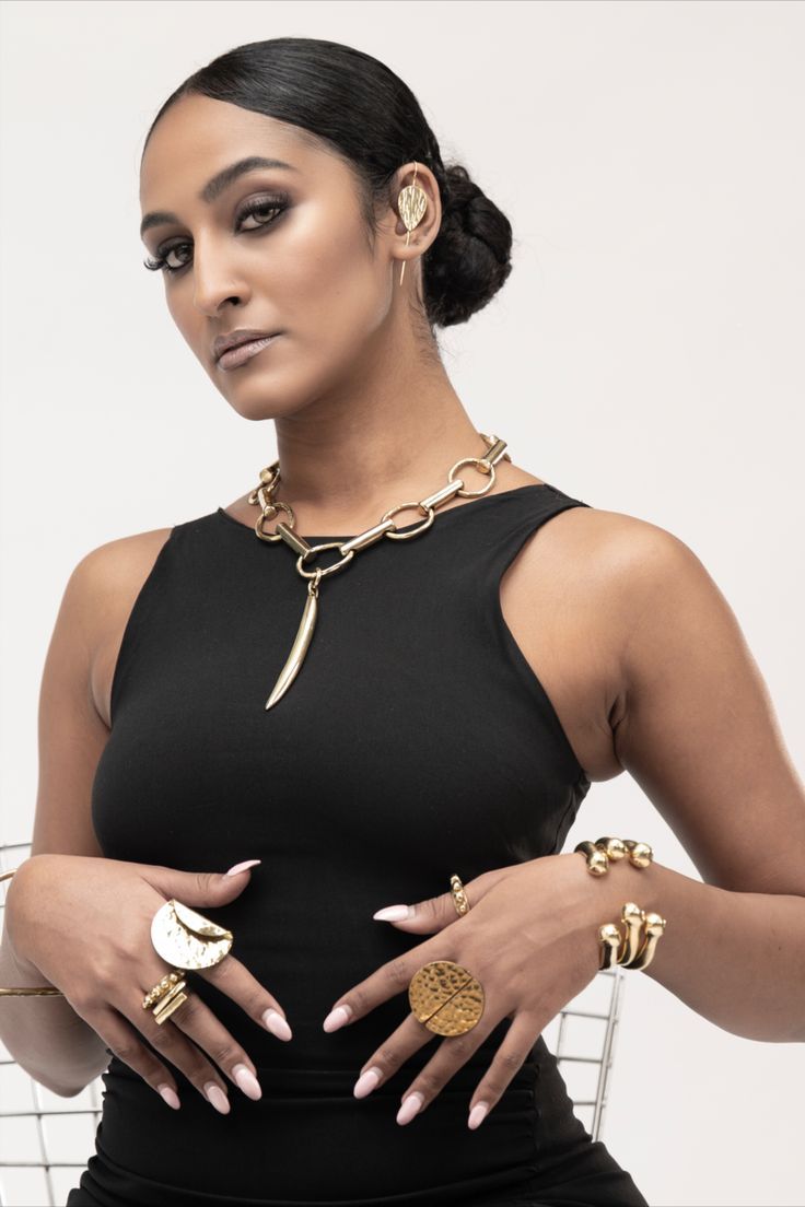 Gallery Statement: Wear solo with a black jumpsuit or minimalist silhouette to let the sculptural form shine.
