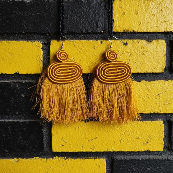 Inspired by the glowing Savannah grass under the African sun, these earrings are a celebration of light and warmth. "Imizi" implies deep roots, and this design connects modern boho aesthetics with traditional textile artistry. The rich golden color symbolizes joy, optimism, and energy. Whether you are dancing at a summer festival or simply brightening up a winter workday, these earrings serve as your personal ray of sunshine.