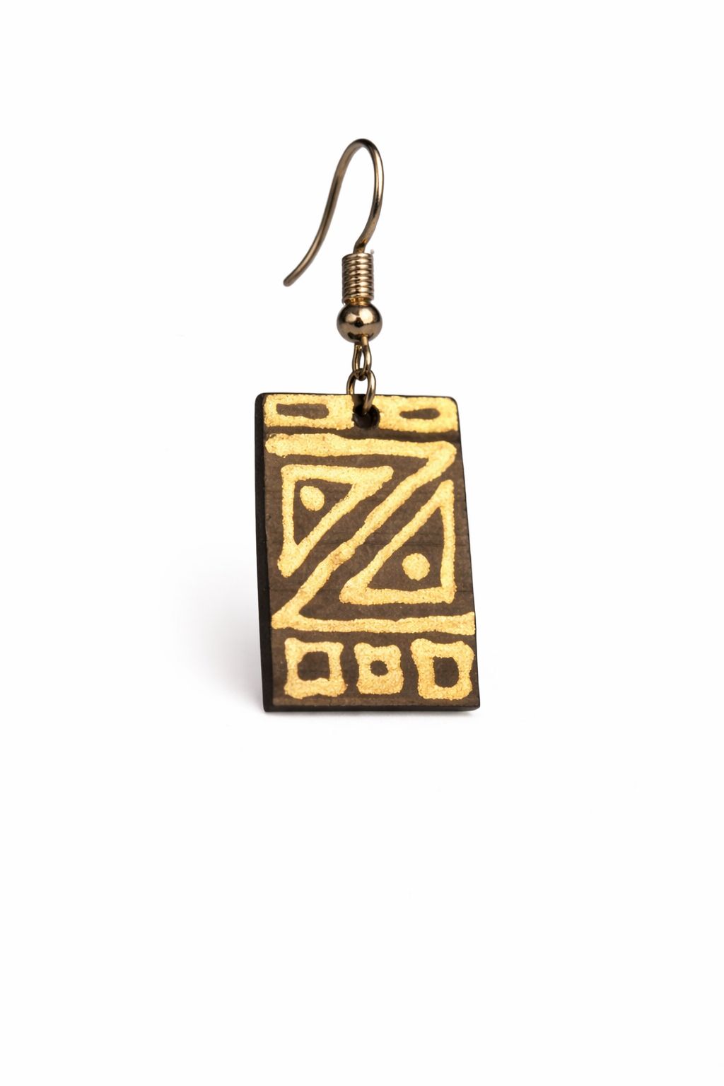 Each earring is meticulously handcrafted on a slender rectangular substrate that provides a clean, modern canvas for the "Golden Zebra" pattern.