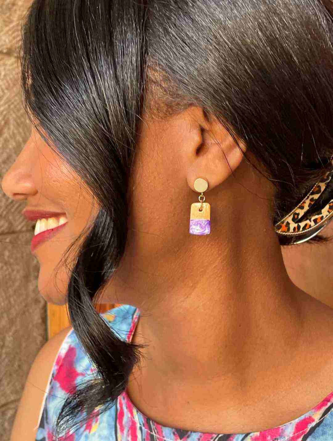 Shop: WerdwotPurple Marble Statement Earrings | Hand Painted African Jewelry | Ethiopian Calabash Earrings | Earrings For Creative | Glossy Resin Finish Earrings | 18K Gold Plated Jewelry | By Werdwot