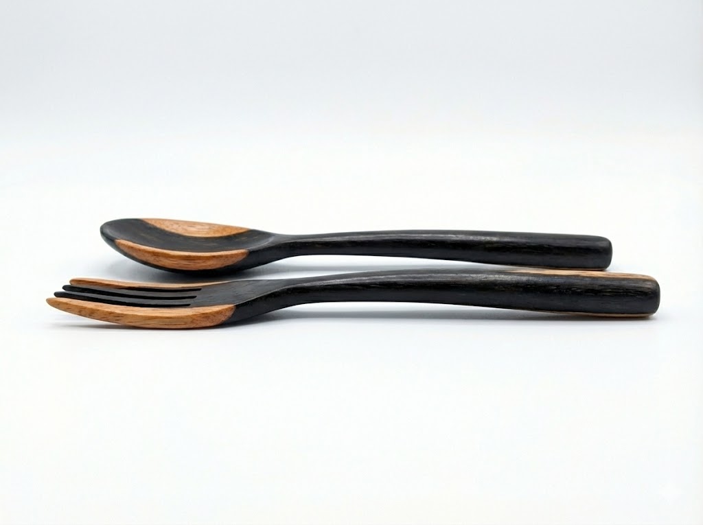Shop: IMIZI CraftsEbony Wood Salad Servers | Handmade Wooden Serving Set | Two Tone Wood Utensils | African Salad Spoons | Hardwood Pasta Fork | Artisan Kitchenware Africa | Rustic Wooden Flatware | Sustainable Home Gifts | Unique Wood Grain Servers | Natural Wood Kitchen Tools