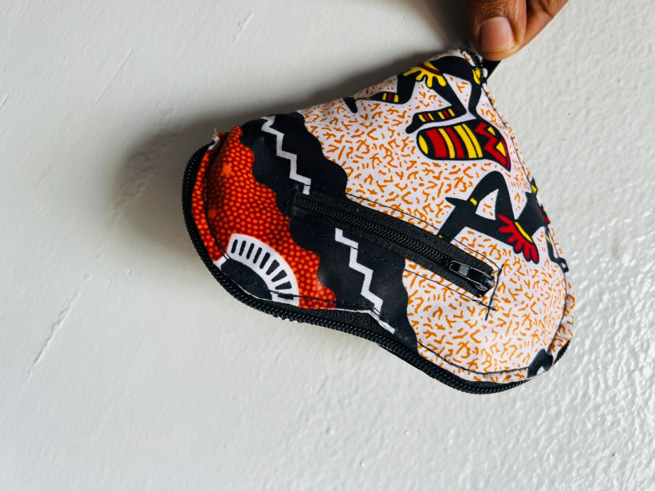 Material: African Wax Print Fabric (Cotton/Poly Blend for durability), Plastic Zipper