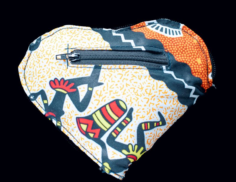 Shop sustainably with the Imizi Foldable Heart Bag. A compact heart-shaped pouch that expands into a durable African print tote. Stylish, eco-friendly, and practical.