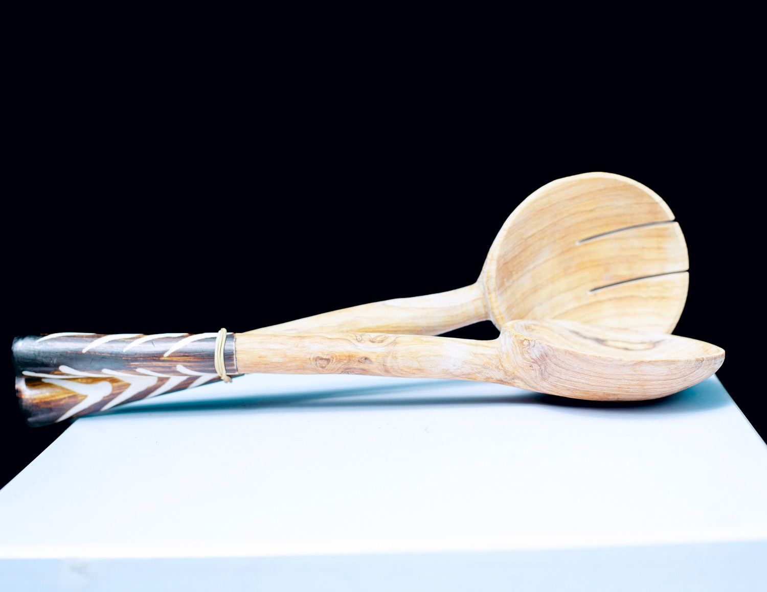 Shop: IMIZI CraftsJacaranda Wood Serving Spoons | Hand Carved Salad Servers | African Wood Utensils | Inlay Handle Wooden Spoons | Lightweight Wood Cutlery | Artisan Kitchenware Africa | Sustainable Wood Servers | Natural Grain Serving Set | Rustic Tableware Decor | Handmade Wooden Gifts