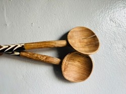 Celebrate the simple beauty of natural materials. These serving spoons are crafted from Jacaranda, a wood celebrated in East Africa for its sustainability and workable grain. The artisans don't just carve the wood; they curate it, selecting pieces that showcase the most interesting grain patterns. finished with subtle decorative inlays on the handle, these spoons bridge the gap between rustic charm and refined elegance. They feel almost weightless in the hand, making passing dishes around the table an effortless joy.