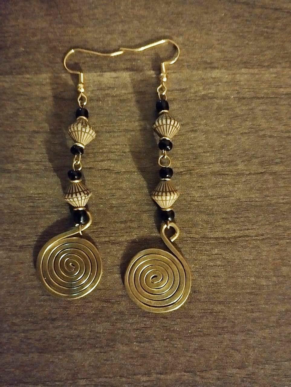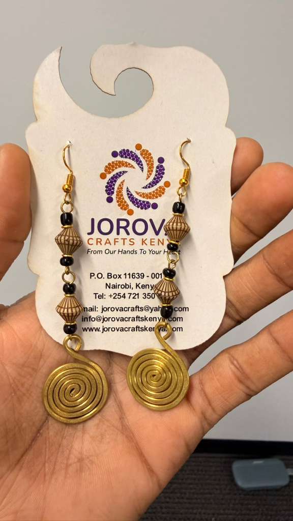 Shop: Jorova Crafts KenyaHandmade Jorova Assorted Stone Bead and Coil Earring | Long Beaded Spiral Drops | Hand-Forged Brass Jewelry | Ethical Kenyan Fashion | Nairobi Artisan Statement Earrings