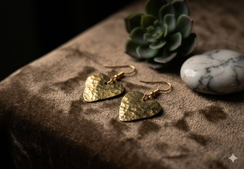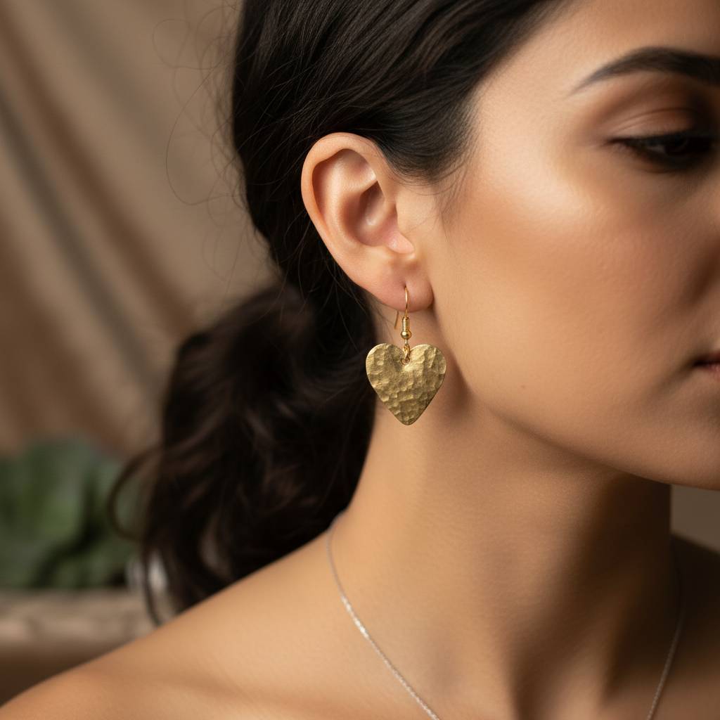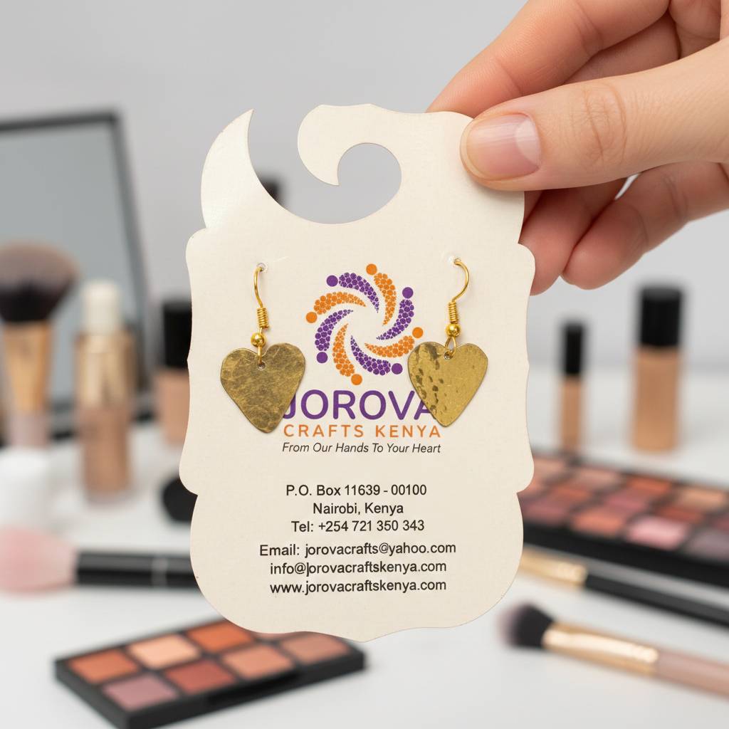 Shop: Jorova Crafts KenyaJorova Heart Shaped Hammered Brass Earring | Hand-Forged Golden Drops | Ethical Kenyan Artisan Jewelry | Nairobi Metalwork Fashion