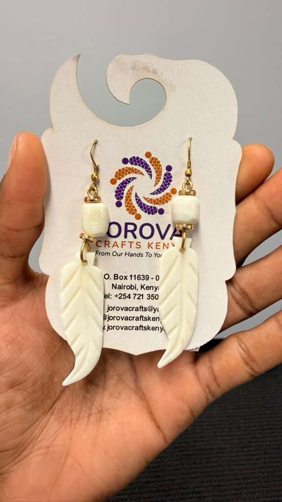 Shop: Jorova Crafts KenyaJorova Leaf Bone Earring | Hand-Carved Nature-Inspired Drops | Ethical Bone & Brass Jewelry | Kenyan Artisan Fashion | Nairobi Heritage Accessories | Lightweight Botanical Earrings