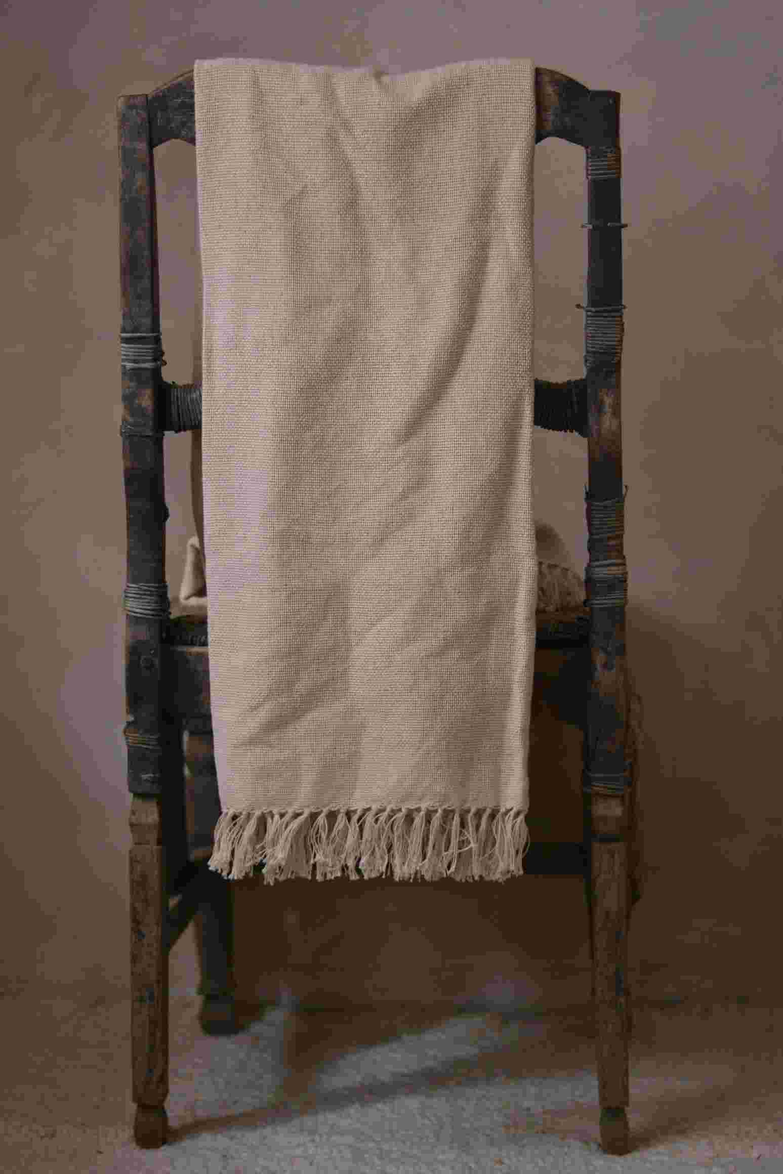 Each throw is handwoven and finished with a 7 cm fringe, preserving traditional weaving integrity while maintaining a refined, contemporary profile. Slight variations in weave rhythm and tone are inherent to the handmade process and are part of the textile’s character — the signature of real handcraft.