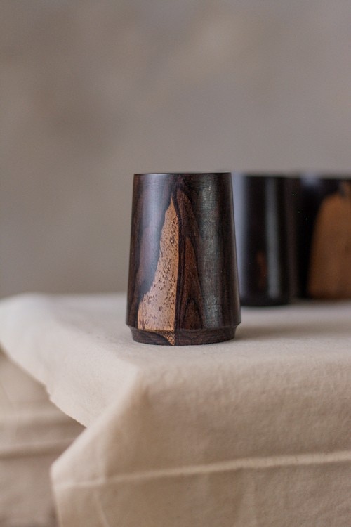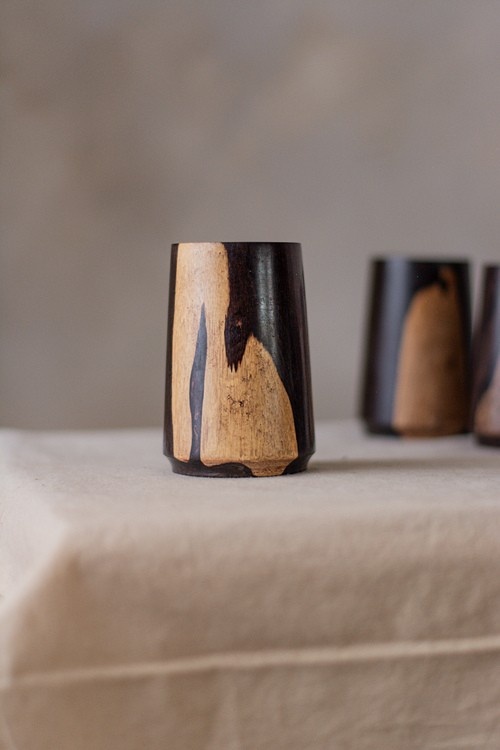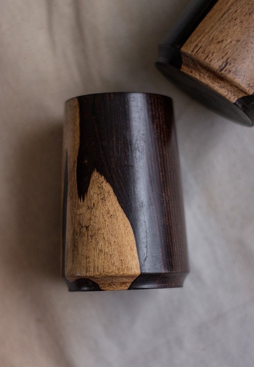 Hand-turned from naturally dual-toned Zambian Ebony, the Lunga Tumbler is a sculptural vessel designed for grounding moments — rich in weight, warmth, and the wild, living grain of Africa’s most dramatic hardwood.
