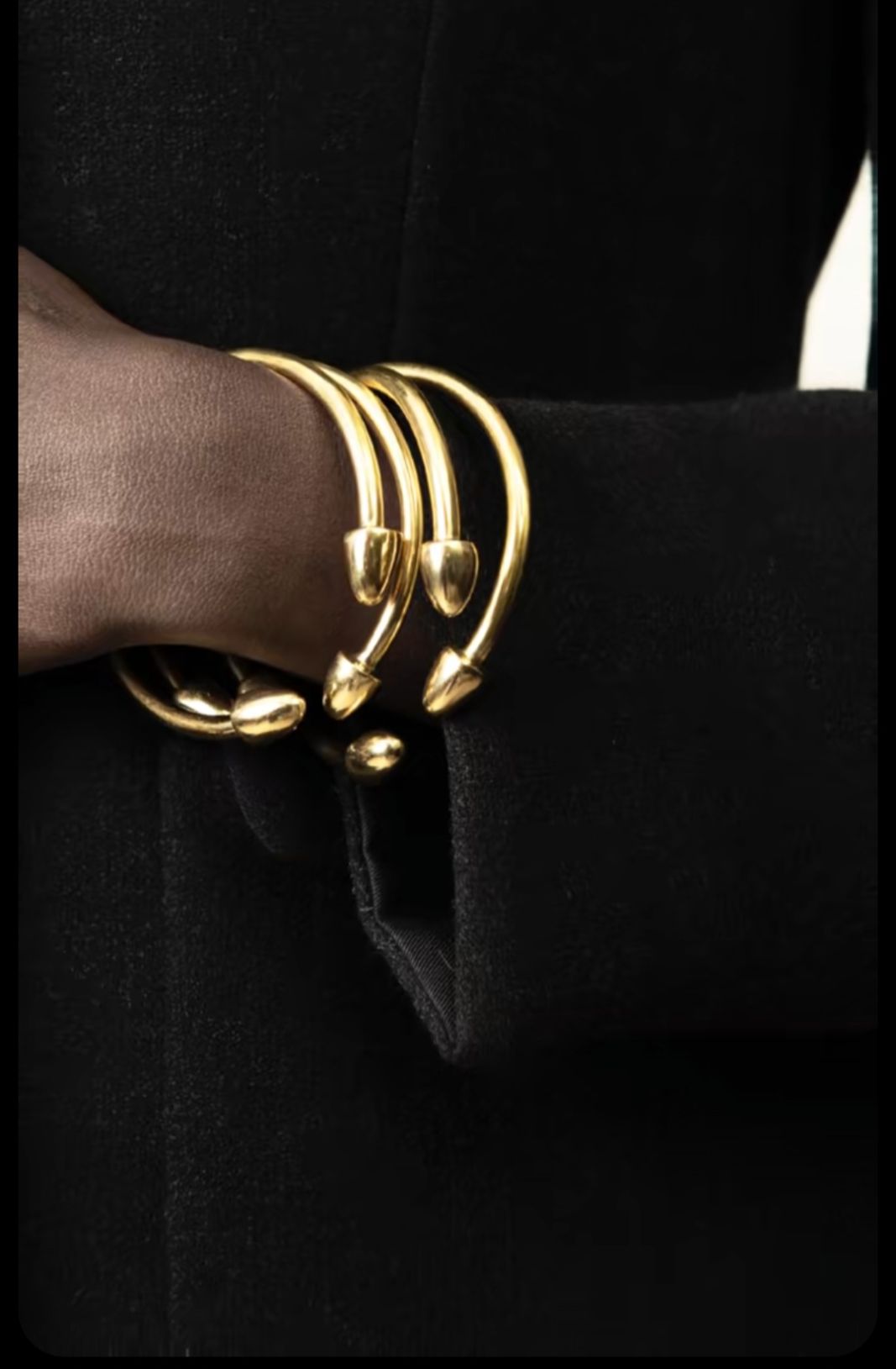 Layered Texture: Stack with thinner bangles or textured cuffs for a curated arm party.