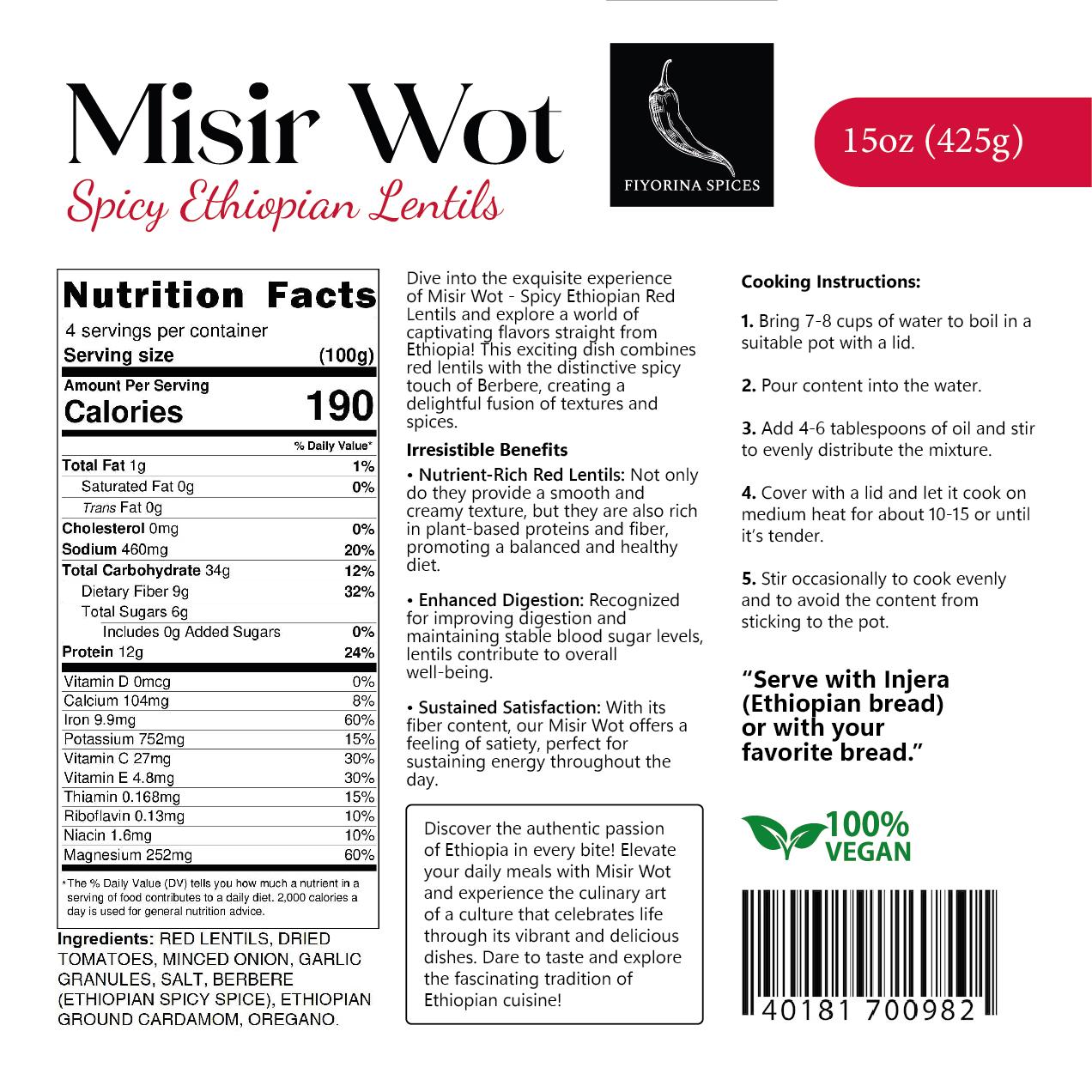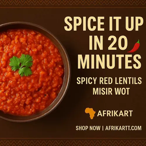 The Story: Misir Wot by Afrikart brings the authentic taste of Ethiopia to your kitchen with this Spicy Red Lentils blend. This Vegan Misir Wot is a protein-packed staple, meticulously prepared to ensure you enjoy the traditional flavors of a hearty Ethiopian lentil stew without the long prep time. Each bag is filled with high-quality, Non-GMO lentils and infused with a rich Berbere spice mix that provides a deep, savory heat and a vibrant aroma.