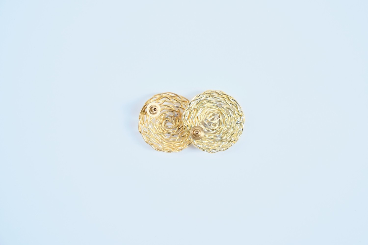 Handcrafted by skilled artisans, these earrings represent a beautiful union of traditional inspiration and contemporary jewelry design. Cast in high-quality brass and luxuriously plated in gleaming gold, the surface features a compelling geometric texture that mimics classic weaving techniques.