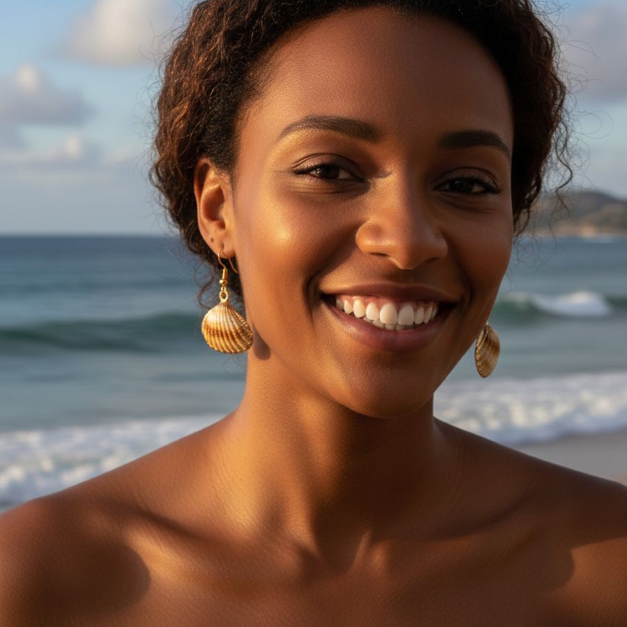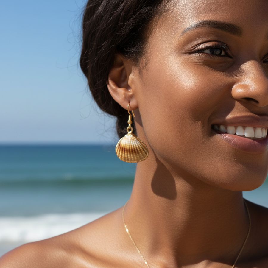 A treasure from the tide. These earrings are a love letter to the ocean, capturing the nostalgic joy of beachcombing in a piece of wearable art. The "scallop" shape is a classic symbol of travel and movement across water. Imizi Crafts elevates this humble natural wonder by framing it in gold, transforming a simple shell into a sophisticated charm. They are the ultimate "Mermaidcore" accessory—feminine, earthy, and touched by the sun.