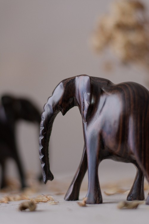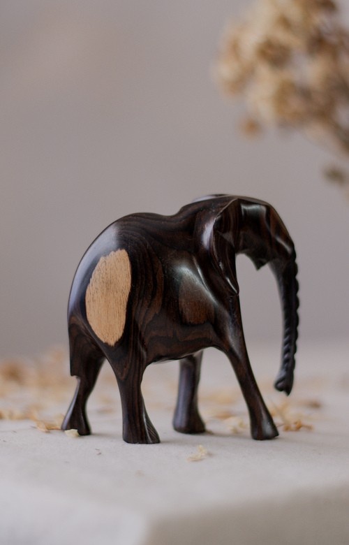 The NSOFU Elephant Herd is a poetic expression of African strength, lineage, and quiet majesty. Each piece is carved entirely by hand from solid Makassar Ebony, one of the world’s most prized and visually striking hardwoods.