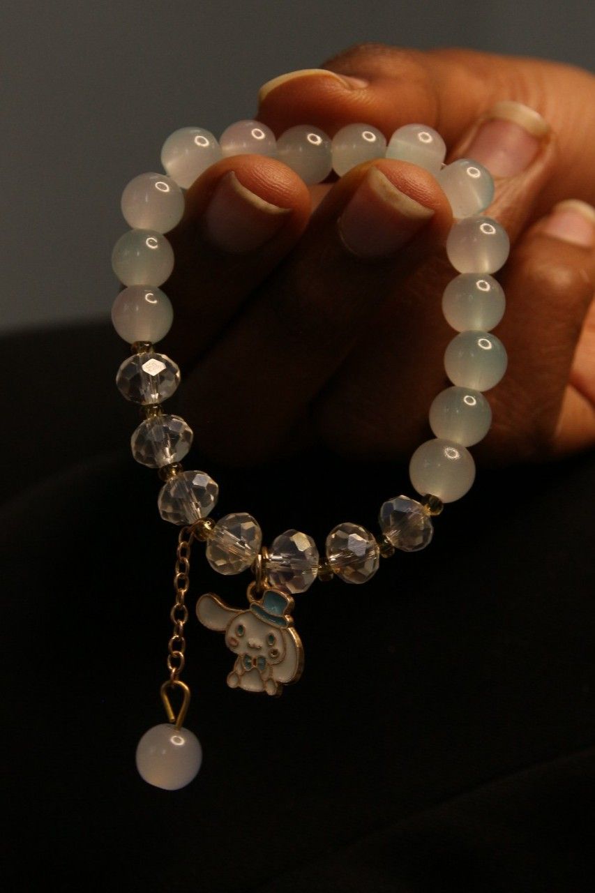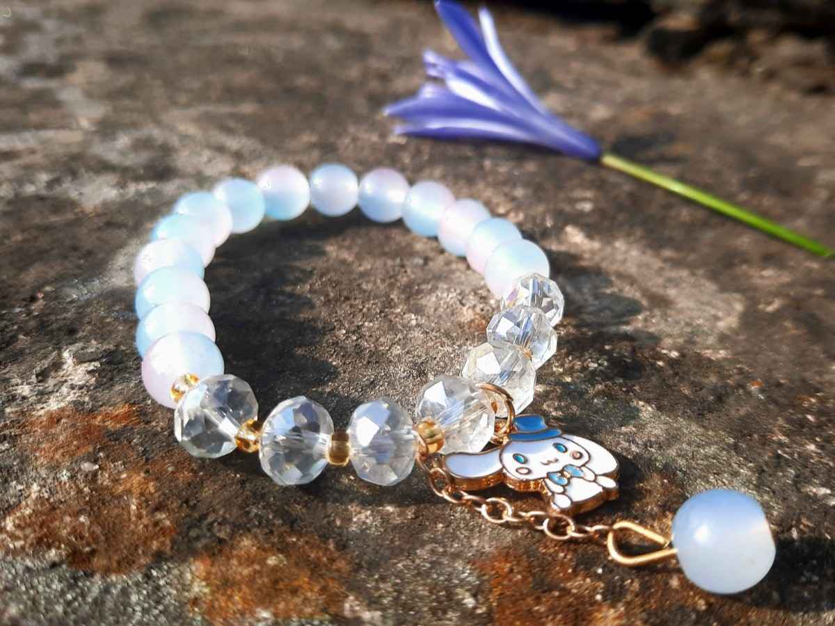 Material: Pale Blue "Ocean" Beads, Clear Faceted Crystals, and Character Charm
