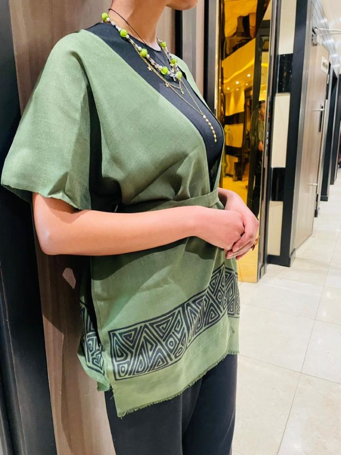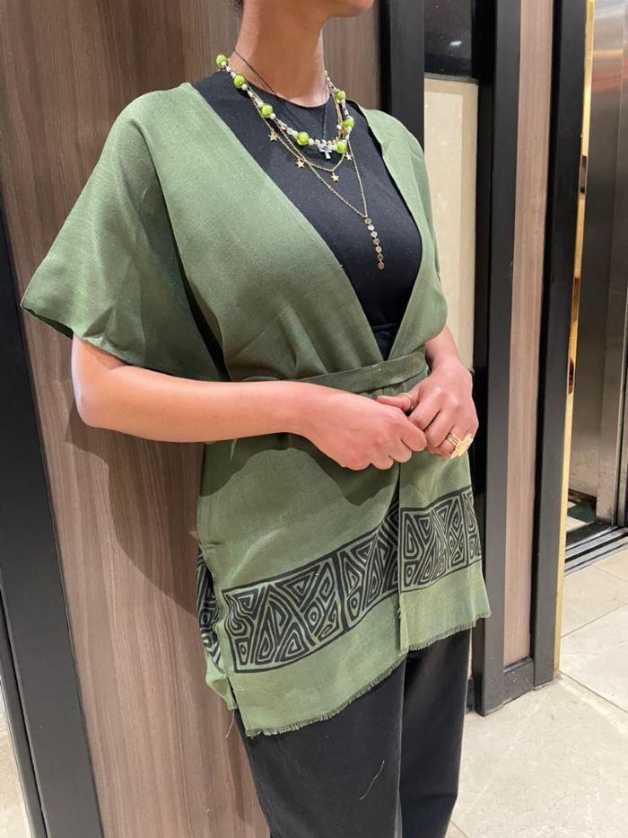It offers the perfect balance of function and aesthetic. The Olive Green tone is incredibly forgiving and easy to style, blending seamlessly with earth tones, denim, and blacks. The sheer fabric ensures you stay cool, while the bold border makes it a standalone statement piece that doesn't require complex styling to look "finished."