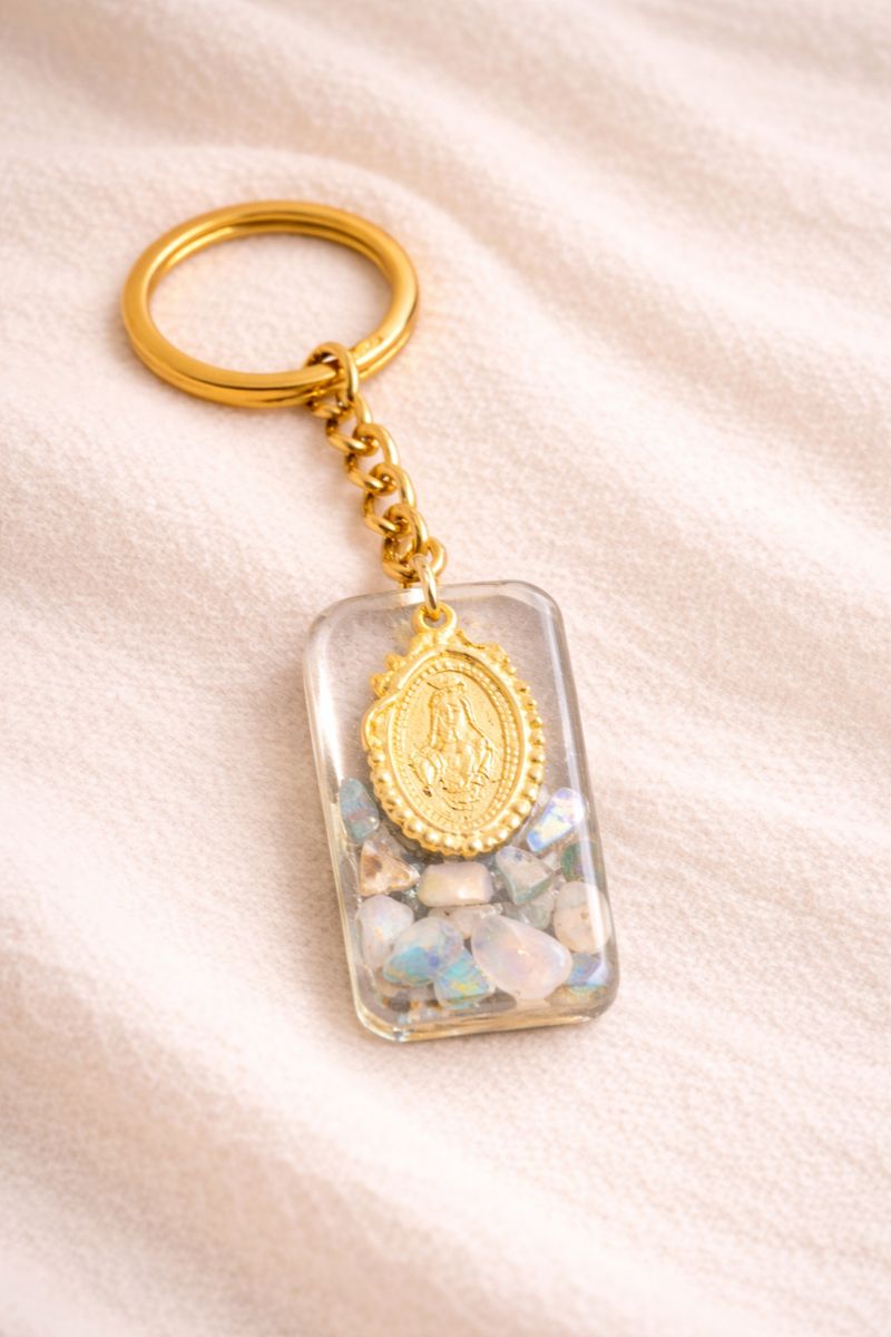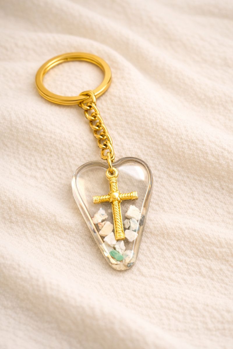 Shop OPAL X CAIN Keychain collection featuring handcrafted cross designs in heart, rectangle, St. Mary, and diamond styles. Elegant symbolic keychains for everyday use.