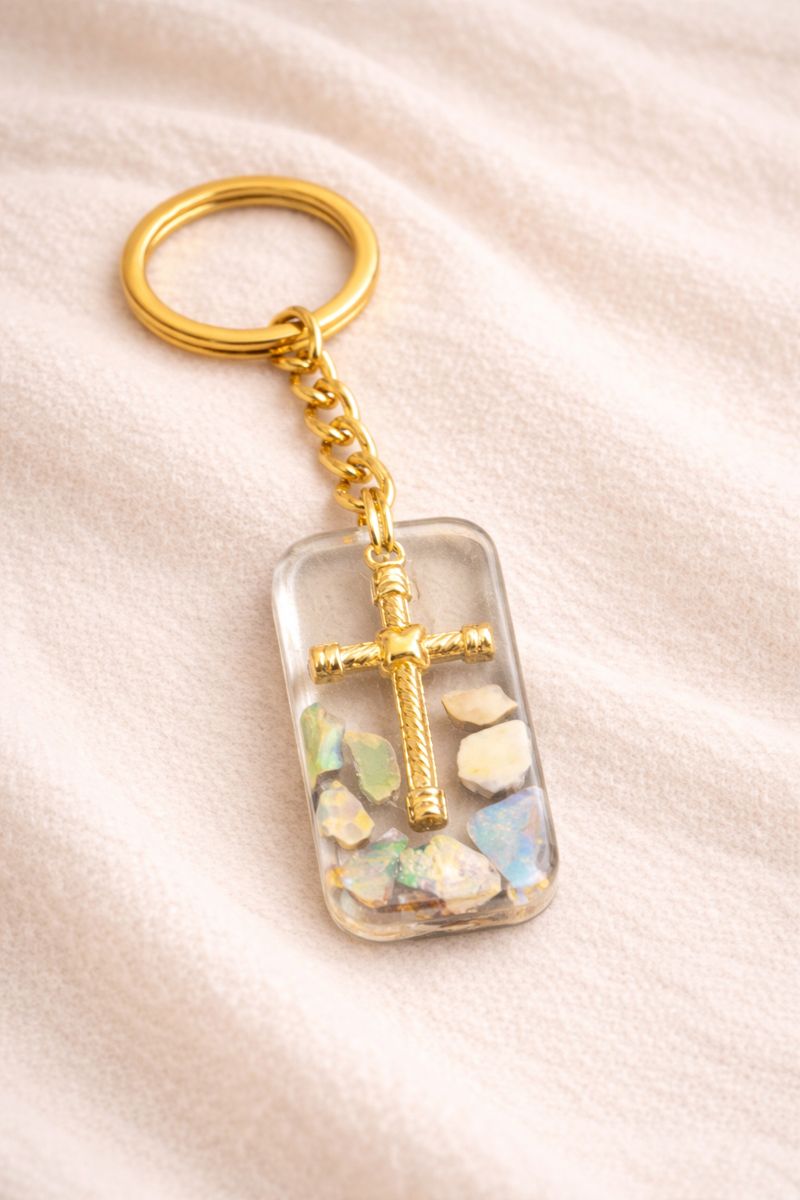 Shop: Glow GemsOpal x Cross Keychain | Opal Cross Keychain | Handcrafted Cross Keychain | Symbolic Keychain | Faith Accessory | Heart cross Keychain | Diamond Cross Eyechain | Minimalist Religious Accessory