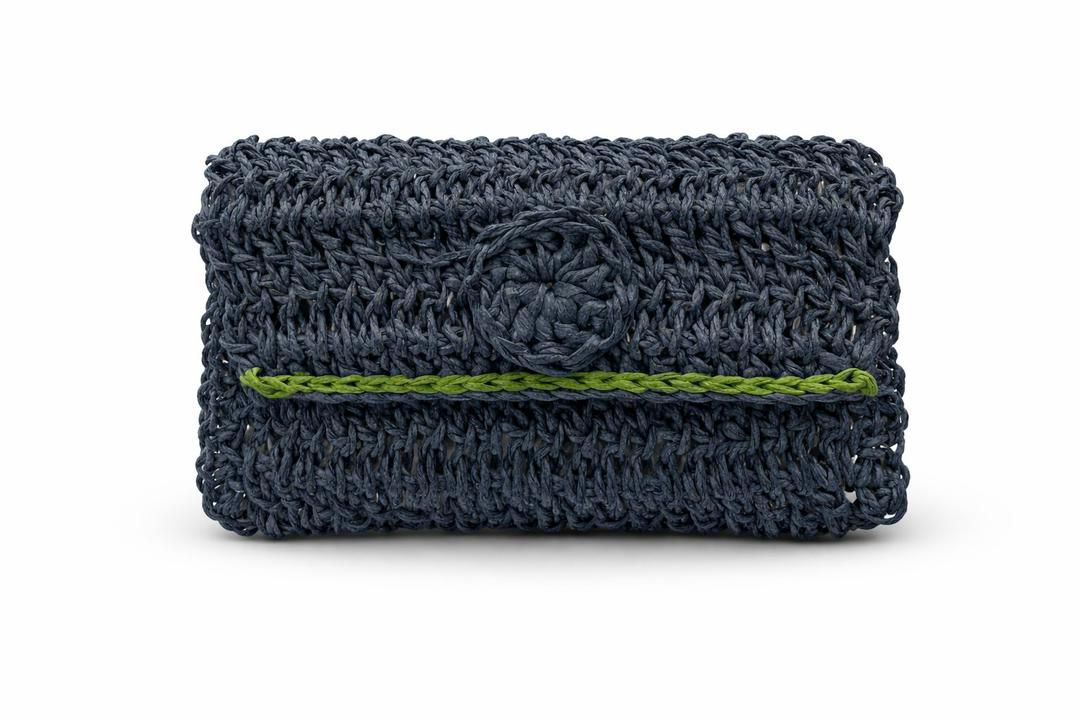 Premium Handmade Raffia Wallet – Blue Jeans & Pistachio Colorway