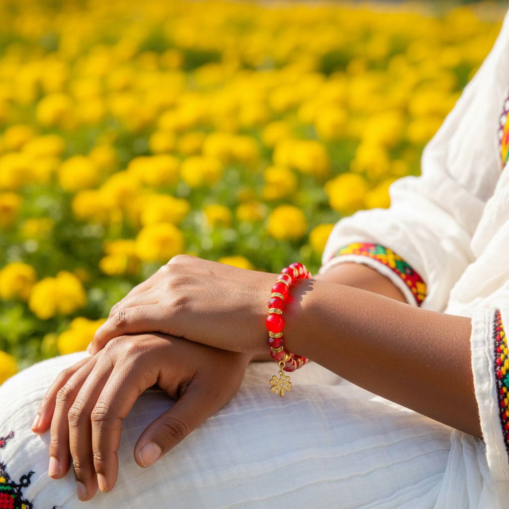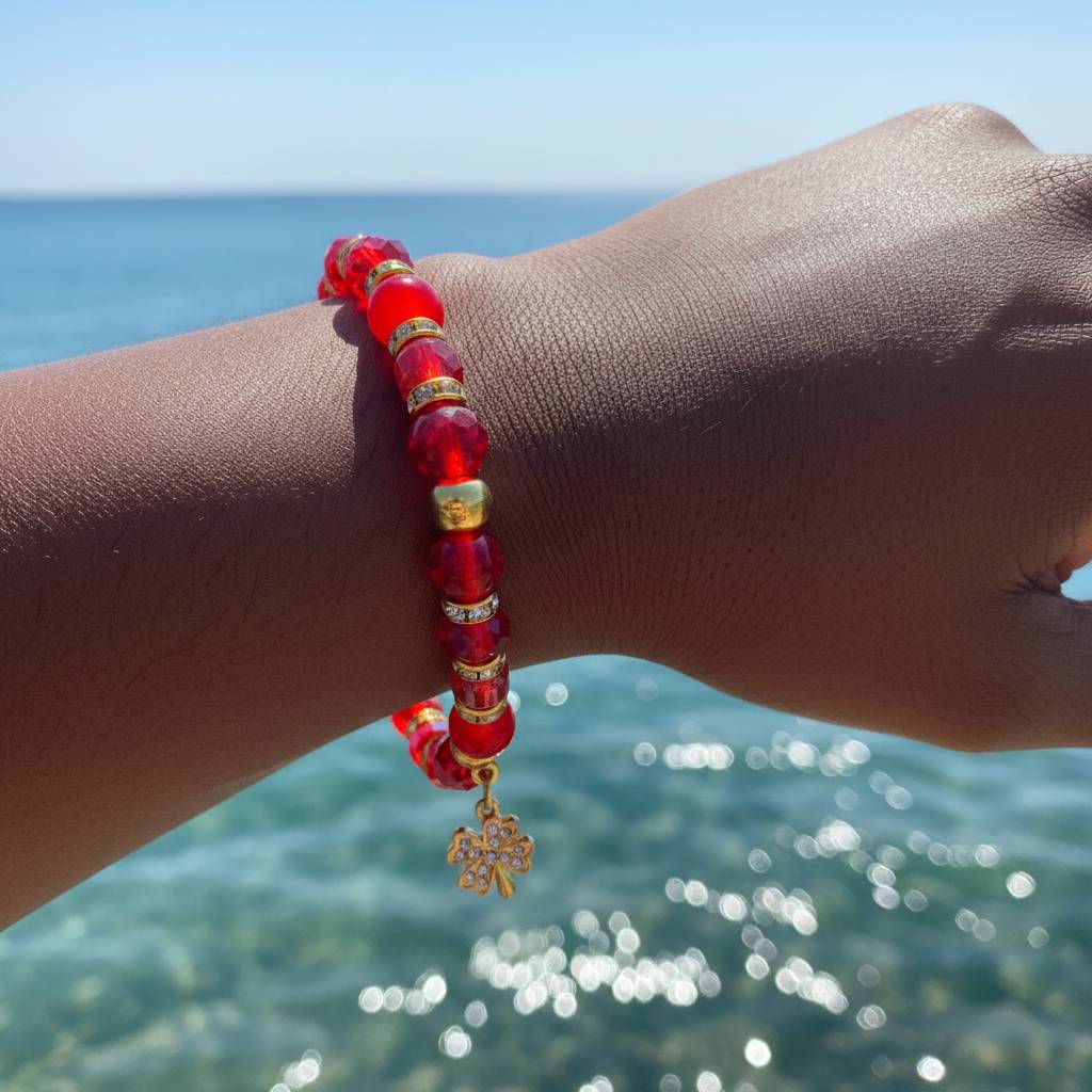 Lucky Stack: Pair it with a simple gold bangle or watch to let the red beads pop while keeping the look cohesive.