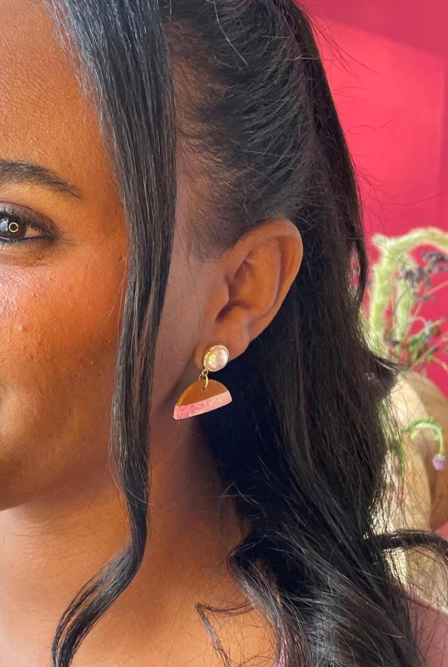 Shop: WerdwotRose Earrings – Enzirt Collection | Handcrafted Ethiopian Calabash | 18K Gold-Plated Earrings | Lightweight Dangling Earrings | Glossy Resin Finish Earrings | Maintaining 18K Gold Plated Studs | Where To Buy Enzirt Collection Rose | By Werdwot