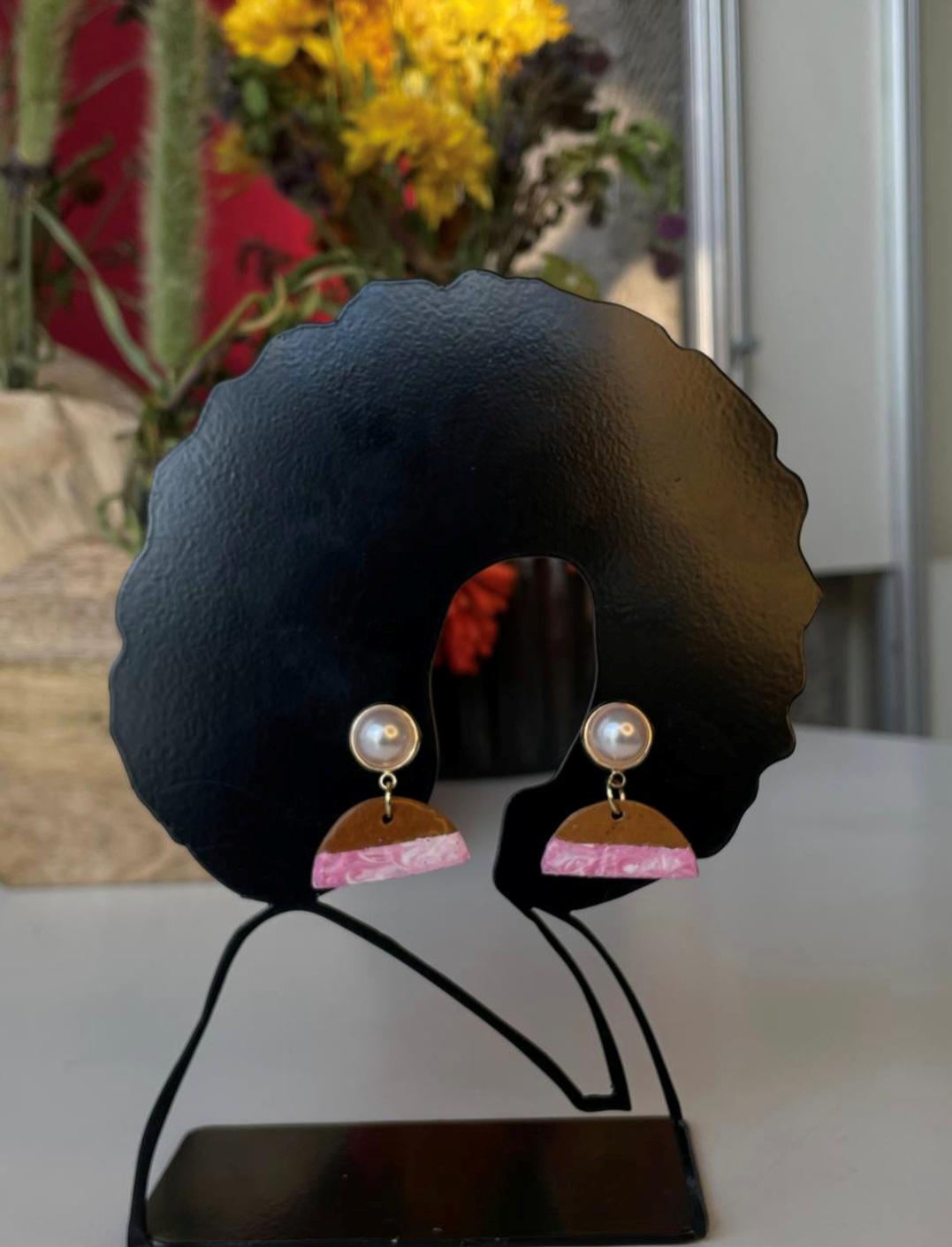 The Rose Earrings from the Enzirt Collection are inspired by softness, femininity, and quiet elegance. Hand-carved Ethiopian calabash is paired with gentle pink-marble swirls, creating a refined statement that feels light, graceful, and expressive.