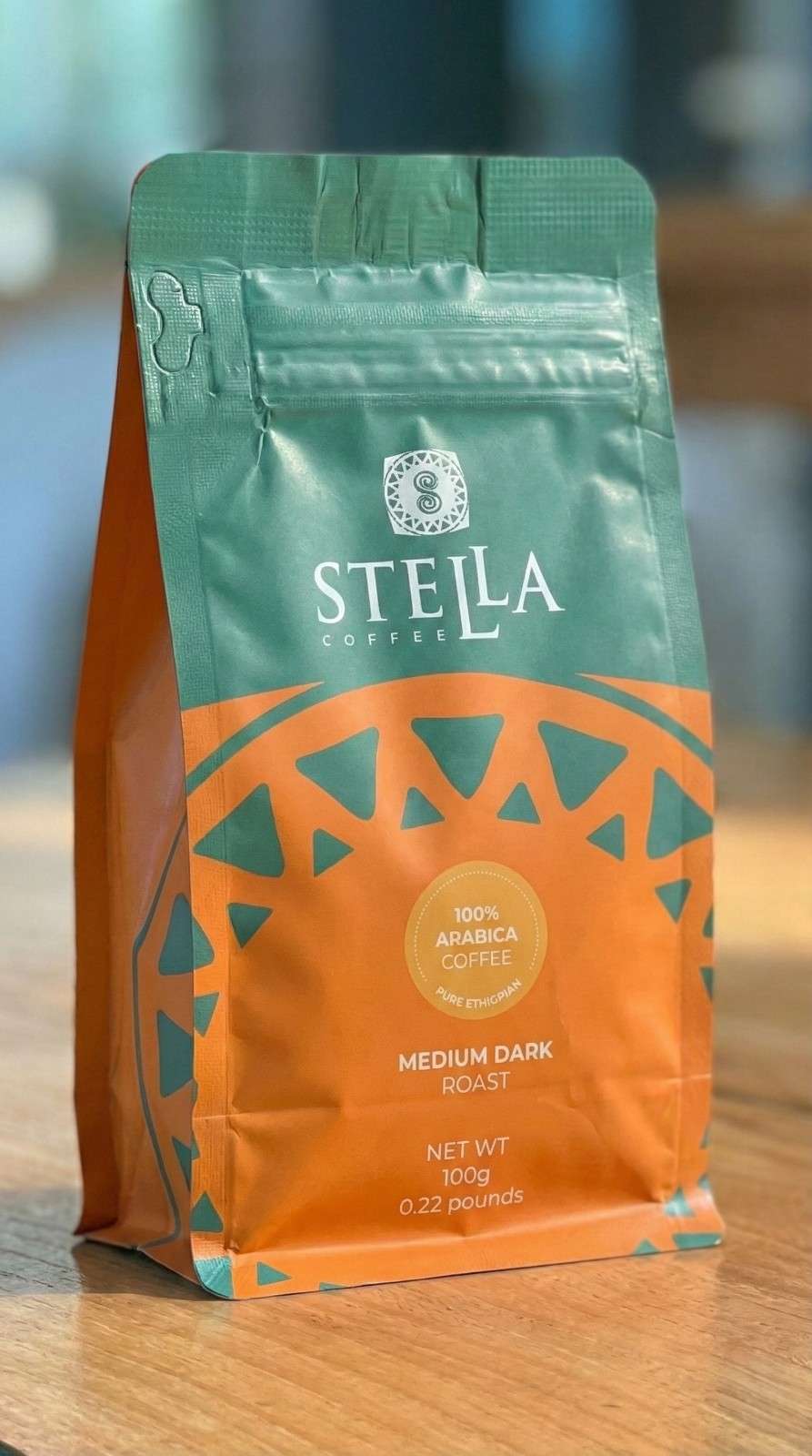Try Stella Medium Roast in a 100g pack. Smooth 100% Ethiopian Arabica with notes of caramel and milk chocolate. Perfect for tasting or travel.