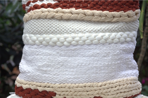 Features raised weave and braided details for added texture