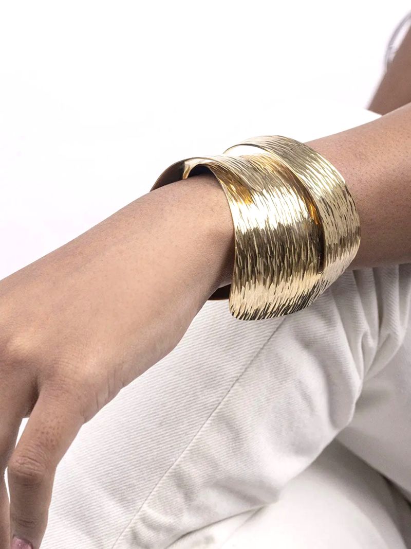 Defined by its bold structure and contemporary sculptural form, the TELE Statement Bracelet balances strength with elegance. Its curved lines and elevated height create a dramatic yet wearable wrist presence.