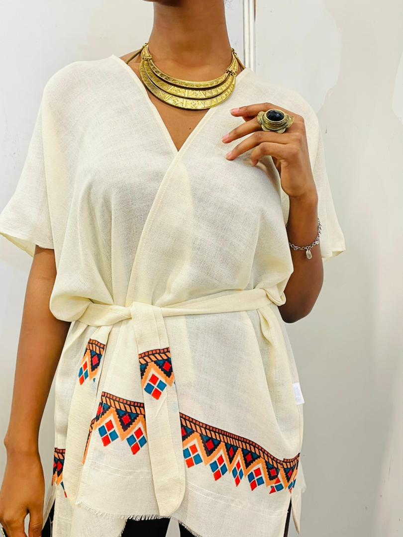 Finished with a soft, fringed edge, this piece reflects the rich textile traditions of the Horn of Africa. Because each item is handmade on traditional looms, your cardigan may feature small variations, ensuring it is a one-of-a-kind wearable piece of art.